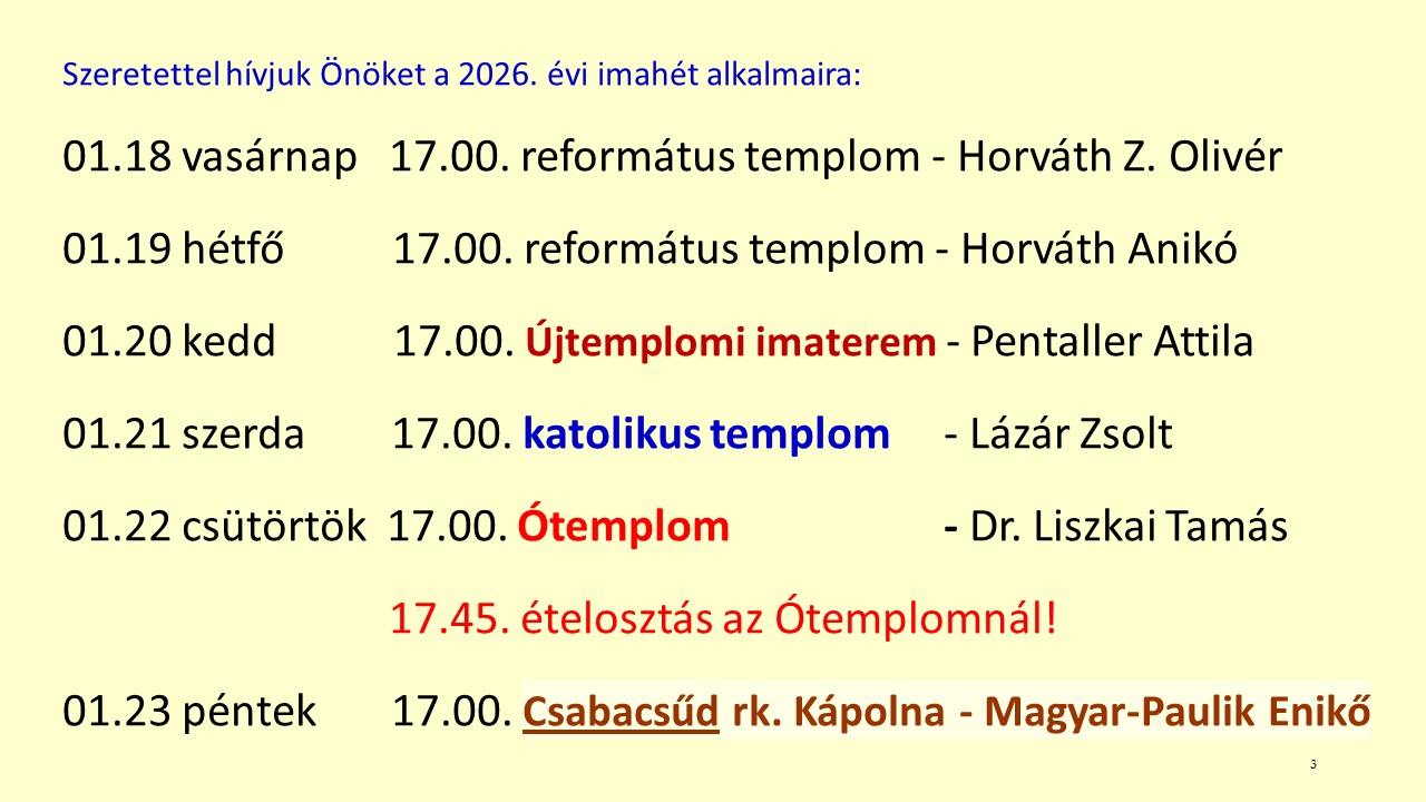 | Ökumenikus imahét: 2026. Január 18-23. | ![]() |